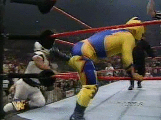 Bret Hart intervenes again to keep it from looking quite so dirty.(He's also kind of disappointed with you for looking at pictures like this.).... AND THE SCENE GOES ON FOR A REALLY, REALLY LONG TIME. Long to the point of you checking your watch, wondering when this embarrassing hot mess is going to end.