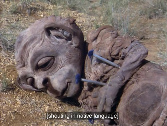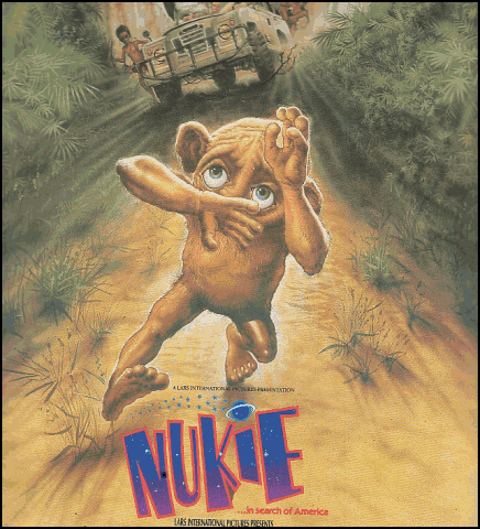 Plot: Nukie and his brother Niko are star children of some nature, flying around the universe. Niko screws around and flies too close to the Earth, and he and Nukie get separated -- Niko landing somewhere that American scientists can pick him up, and Nukie landing somewhere in the African bush. Niko is inexplicably tortured by the scientists (they do things like burn his eyes with lasers. What possible scientific purpose could that serve, other than torturing him?) and spends the rest of the movie yelling, "Nukie! Nukie! Where are you?" and Nukie spends the rest of the movie wandering around the African bush, yelling, "Nico! Nico, where are you?" There's also some stock footage. But the bulk of this movie is Nukie wandering through the African bush with a runny nose.