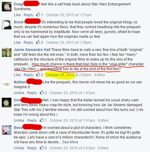 You'll note that my comment up there was "edited". And before you try to claimthat I retroactively edited in this line about Han -- I can show you the original, if you ask.