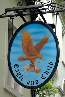 C. S. Lewis - J. R R. Tolkien - A. O. Barfield - C. W. S. WilliamsIl Bird and Baby e gli InklingsMa l’Eagle and Child", come scrivevo, non è un luogo qualsiasi. Tra gli anni Trenta e Cinquanta, un gruppo di amici molto particolare si vedeva il martedì per pranzare assieme e tra loro: J. R. R. Tolkien, Charles Walter Stansby Williams, Clive Staples e Warnie Lewis, Adam Fox, Roger Lancelyn Green , Robert Emlyn Havard (era anche il medico personale di Tolkien e Lewis), Ronald Buchanan McCallum, George Sayer , Arthur Owen Barfield e Christopher Tolkien.Gli incontri erano fissati il martedì a pranzo nel pub anche chiamato "Bird and Baby” e il gruppo si era dato il nome di nome "Inklings" con Tolkien che amava anche definirlo "il nostro circolo letterario di poeti di mestiere". Scopo degli incontri era il discutere, leggere i propri scritti e quant'altro avesse a che fare con la loro produzione letteraria, davanti ad una o due pinte di buona birra. (Come recita una parte del menù del locale). In quel luogo si sono lette ad alta voce, per esempio, le prime bozze delle Cronache di Narnia e del Signore degli Anelli. Personalmente, in questo luogo ci sono stato ogni anno a partire dal 2003 e con me ho sempre riportato ricordi bellissimi e qualcosa anche di “