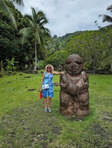 At 1 p.m. we were on a guided tour organized by Paul Gauguin to a very modern museum with ancient canoes and wood carvings followed by a visit to a sacred site still used today made of lava stones.