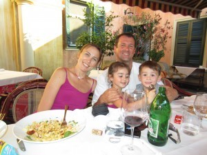 Sonia holding a copy of OC Register 8-23-12 and pointing to the article written by Lori Basheda “Lake Forest family leaves the rat race.”