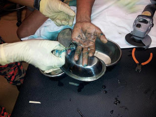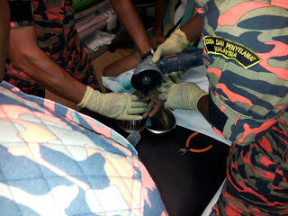 Di bawah ini merupakan NUT yang berjaya ditanggalkan dari jari mangsa. Perhatikan bagaimana pihak Bomba dan Penyelamat bertungkus lumus menyelamatkan jari mangsa.