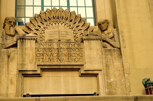 Los Angeles Library is the biggest library I’ve ever been to. Granted, it’s not the shiniest or the one with the most personality, but in the middle of the biggest and oldest (and in my opinion, best) city in the American West, set up between the towering skyscrapers like the Aon building and the across-the-street U.S. Bank Tower (as shown in the last picture) , it’s hard not to let your jaw drop. The outside boasts impressive Egyptian and Mediterranean-Revival inspired architecture, as if it is the architectural cousin to Griffith Observatory. I look forward to making this library my library in the near future.
