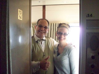 Picking up the train tickets involved circling a block twice (after the driver got into an argument with a street policeman about something), a man running out to the car, lots of money changing hands, and me being handed a train ticket that listed our nationality as “Australian”. We were a wee bit nervous, but we boarded the train with no problem and found that our cabin was spacious, private, and comfortable.