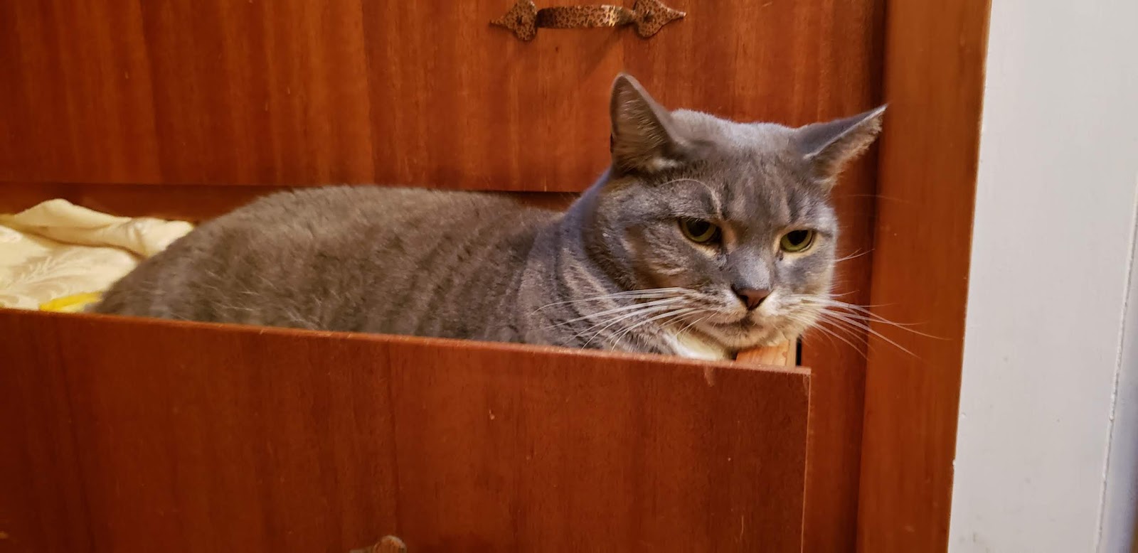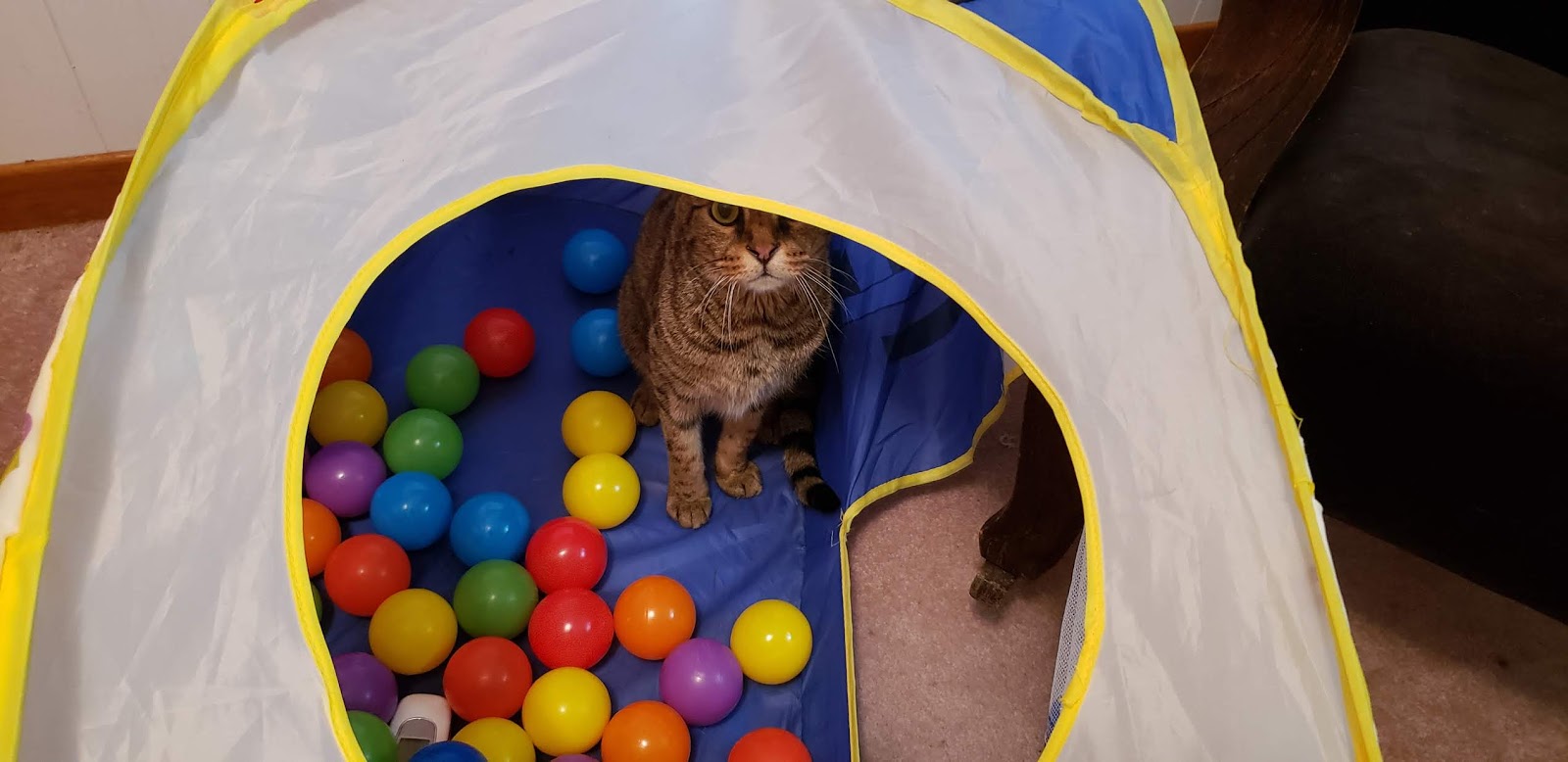 Can you say, Go Gadget Go? A toy hoarder don't you know.But since he is away,The cat will tell the real story anyway.