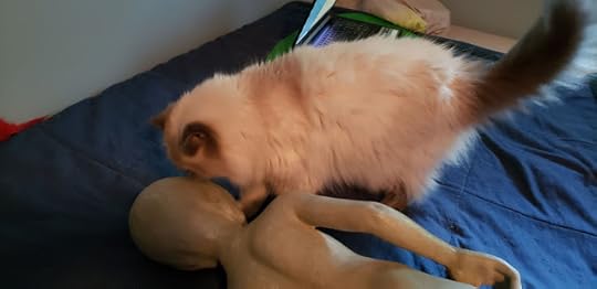 It seems some are obsessed with that little grey fellow. Maybe because he's a bit mellow? Beats the heck out of the cat. But he didn't want to come back to our blog mat. At least not now. I think the poop machines made him have a cow.