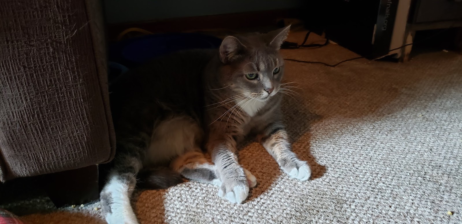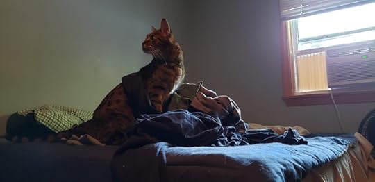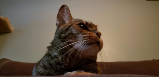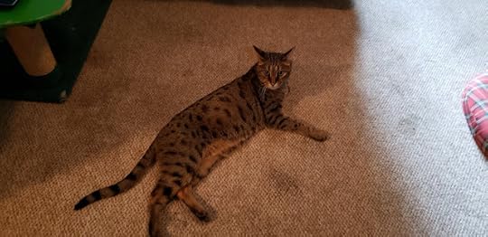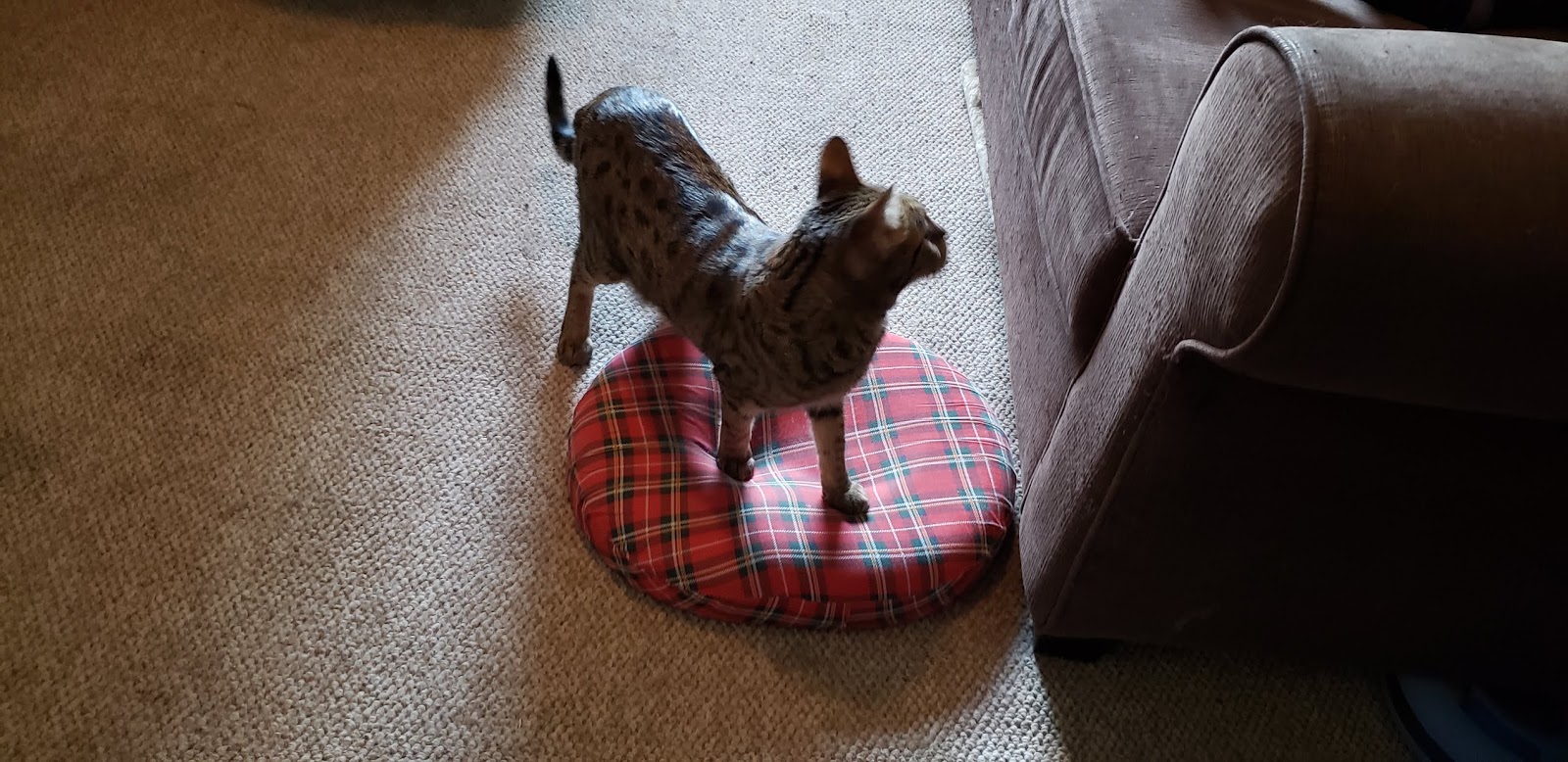 The cat smelled some funky things on Pat. We asked him and he said nothing about that. He just ignored it. Well now we know he was slumming it when out. Even doing it when about.