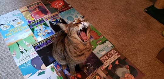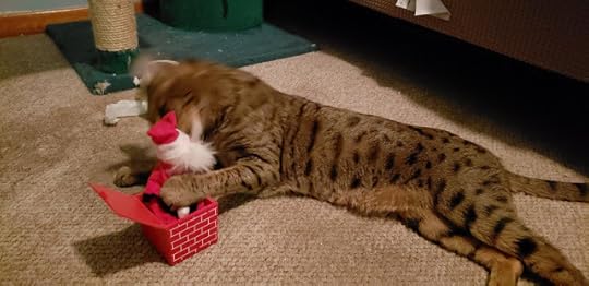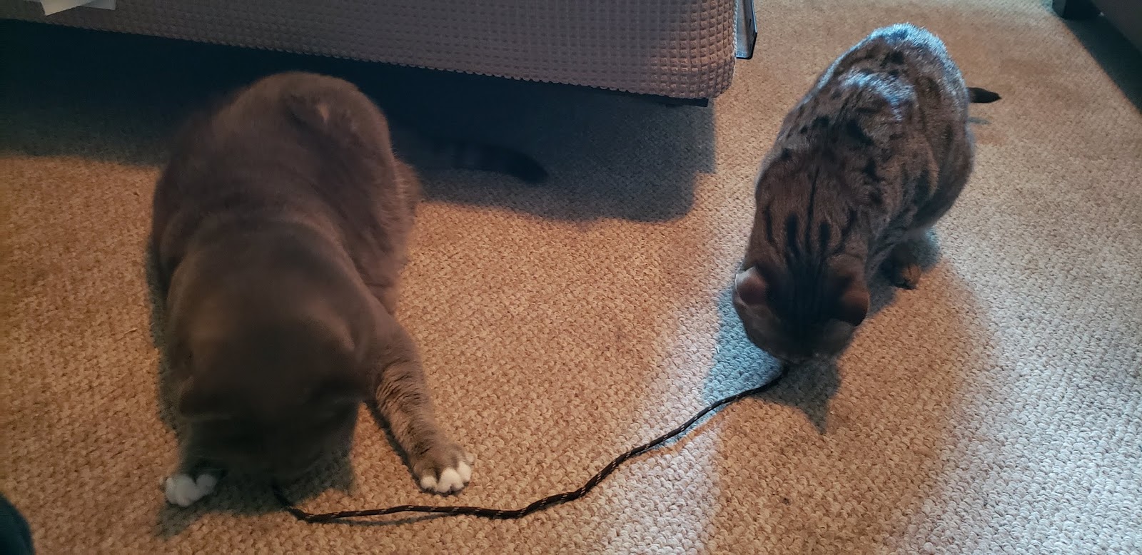 Pat got shameless self promotion and he still wouldn't give the string some motion. He hid it from me. Cassie let it be. Not me though. Have you had anything stolen from you that you won't let go? It will kill me? Bah, are you a vet at your sea? I'll poop it out just fine. I'm a rhyming feline. No? Bah, listen to my flow. I'm fine at eating string in mass. Pat only thinks he is protecting my little rhyming ass.