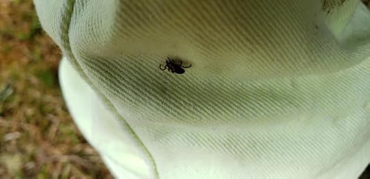 Can you tell I have no love for them at my sea? They are one species that can go extinct and leave us be. Germ-ridden nasty things. They can take down bums to kings. All from one tiny little bite. They can turn you from light to darkness of night. Left with only a shell. Their petri dish of disease can cause any hell. That blotch in the last photo is one that attached itself to the car window. The grass there was even low. 2019 has resulted in 62 on me so far. Yeah, I don't want to get out of the car. Any wood ticks where you are at? Do you hate them as much as Pat and cat? If there were no nasty diseases and such, we wouldn't care very much. But on those life-altering diseases we'll take a pass. And yes, one actually did crawl up my little rhyming ass.