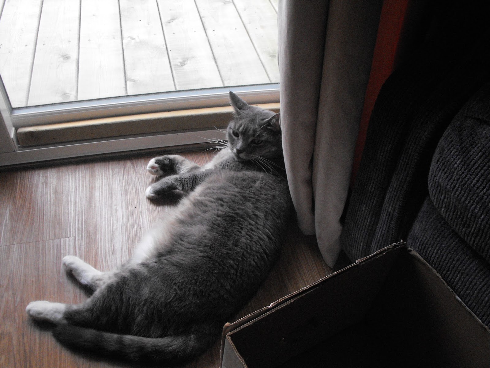 Was too fun to watch at my sea. Was that mean of me? The cat sat on the table and watched the show. Cassie was too prissy to give it a go. Hey, it got done and gave the cat fun. Pat or the cat didn't need to help out. We just lazed about. She can be one cranky old lass but she is too slow to catch my little rhyming ass.