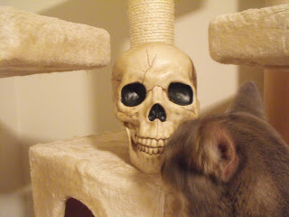 Boney is back and he sure does lack. I am not sure what went on with him. Hmm, maybe I made him grim. I did knock him over the other day. But I swear I never made heads or tails of his head dismay.
