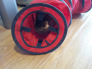Cassie wanted in. I can't let her win.I planked myself inside.I liked my tunnel ride.
