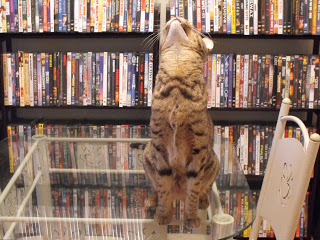 The cat was hopping here and there when he saw a scary video at our lair. The cat then delved into the dark side of YouTube. I've now locked those things away in a small cube.