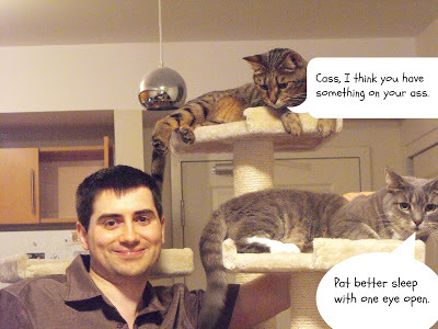 So the cat had to deal with those small messy humans the other day. Do they really call digging in sand play? The cat has better things to do in sand. Hanging out with them you're likely to catch an ebola strand. Or would that be strain? Either way, the germs rain.