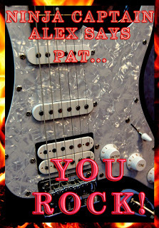 The ninja wannabe says Pat rocks.The cat has to agree.Does that cause shocks?While just follow along with me.