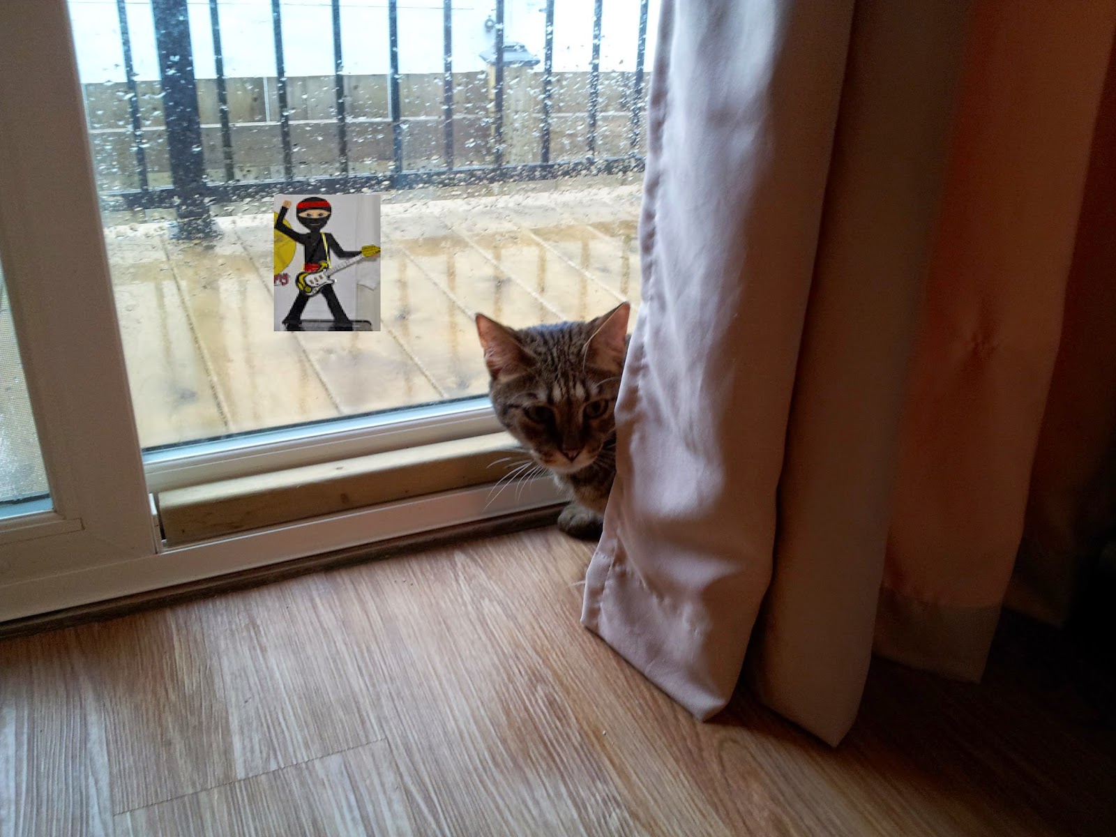 He came in the rain,To begin our ear pain.That mini ninja wannabe guy.I gave him the stink eye.