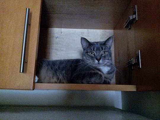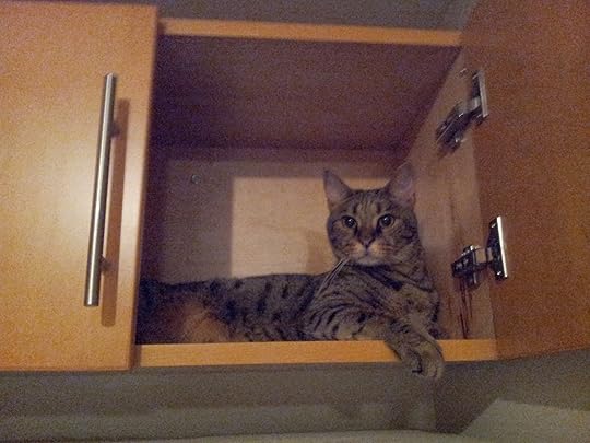 Cassie went old mother Hubbard.She hid in the top cupboard.I thought it was a good spot.I liked it a whole lot.