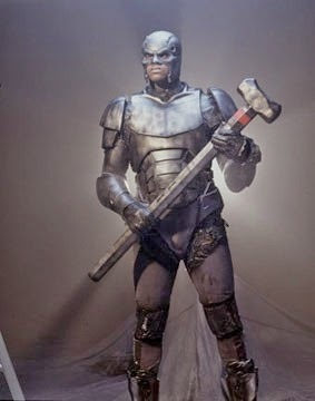 He dropped the basketball,Now he'll get you at last call.He swings his mighty hammer.Is he wearing parts of the slammer?