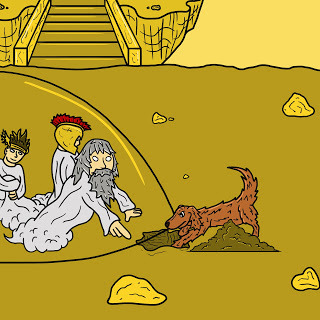 So today we add another to the plate, one that you have seen at a former date. It stars another version of the third person talking loon, with the mind of a baboon. He is really a god in this though. Sadly he can't even stand up to a mutt at his godly show. Or maybe he can indeed? Guess you will have to read.