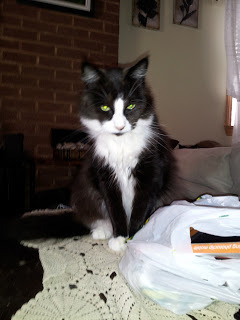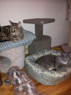 Yeah, even employed dogs at my sea. They are good for something here and there between peeing on a tree. And never fear, I gave those posing kitties fear. I swatted them upside the head for not helping me get my bed. Now there was my kitty adventure for today, back to lounging about my bay. I don't care if I have any class. I just enjoy being a little rhyming ass.