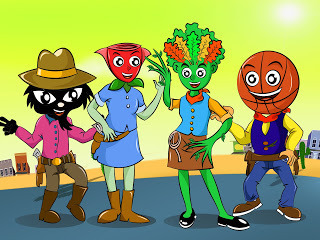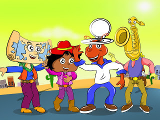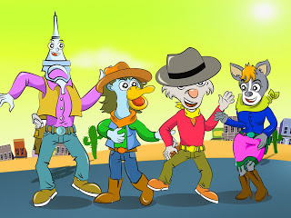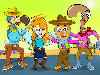 Here we have a stretchy human waffle type guy.A rockin robin who can really fly.A day dreaming cloud,And this cactus can tell you items in a Japanese word cloud.