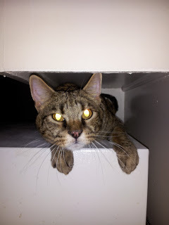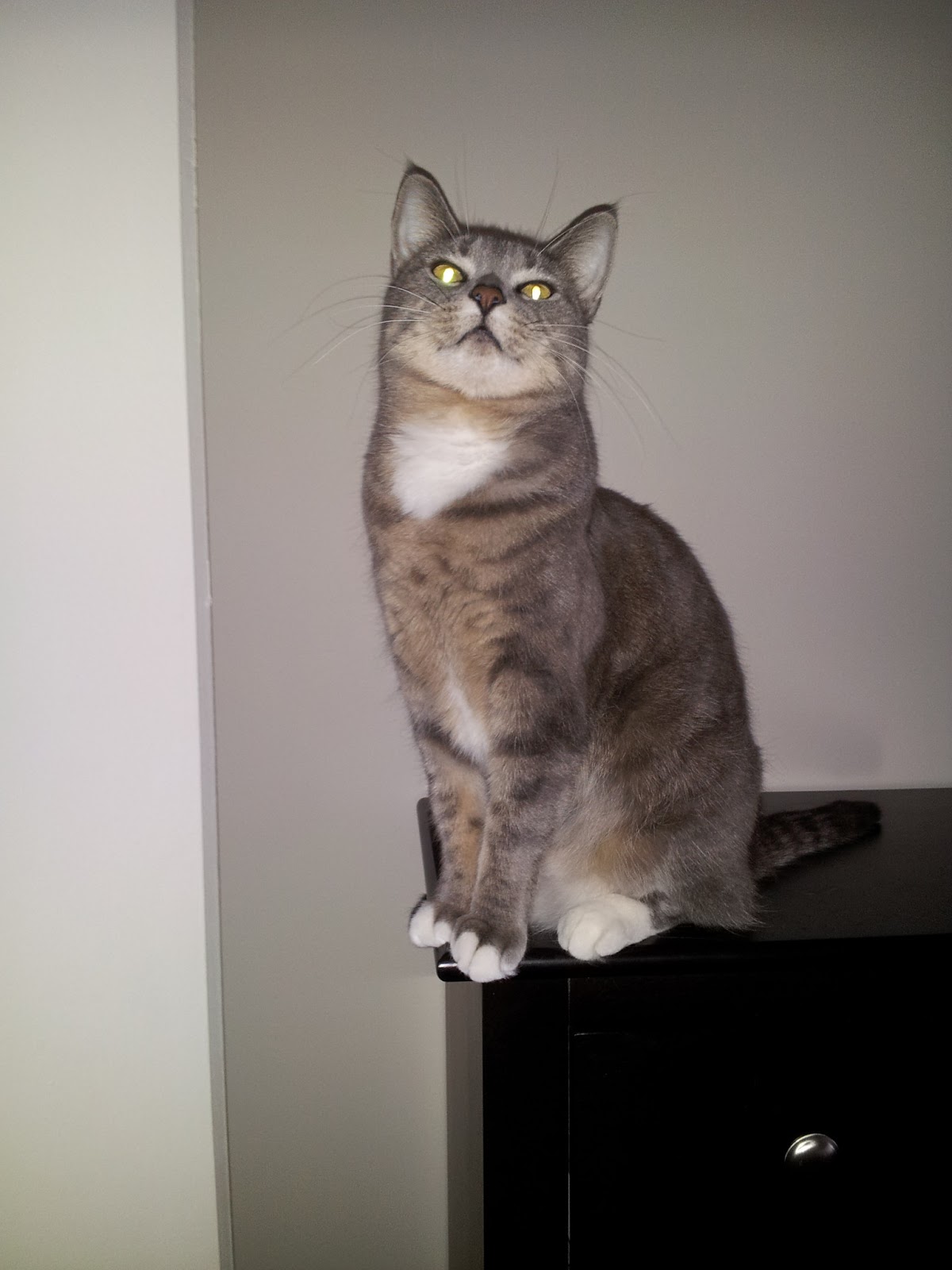 So for those that do not know the cat just went all Pokemon in the title today at my show. Leer is used to lower defense and all at that games hall. But sadly the cat doesn't even have to use that on some as they are just a tad umm dumb.