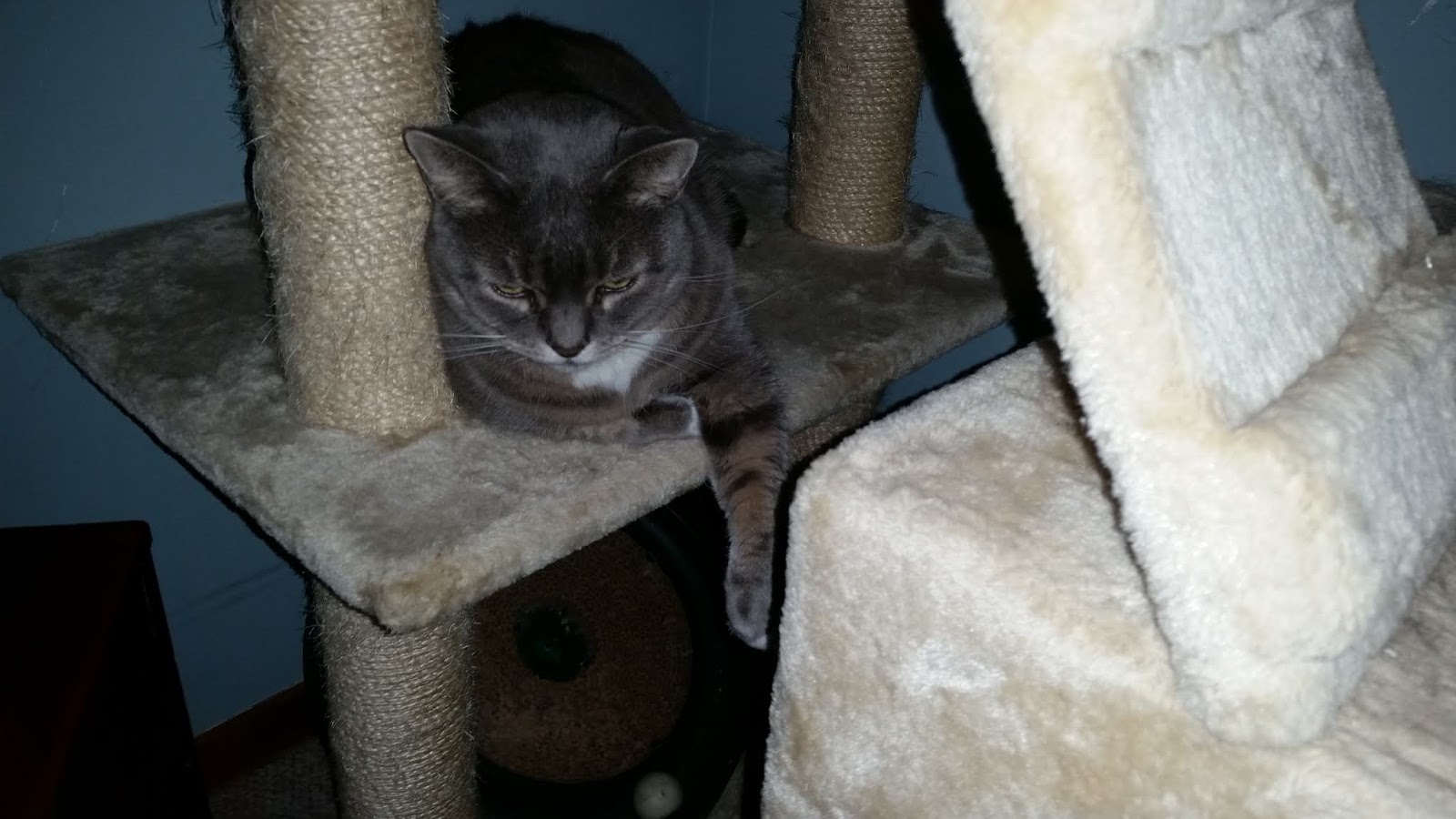 "Don't bring me into this.I've no reason to hiss.I still get brushed and fed.You're the one with too much crap in his head."