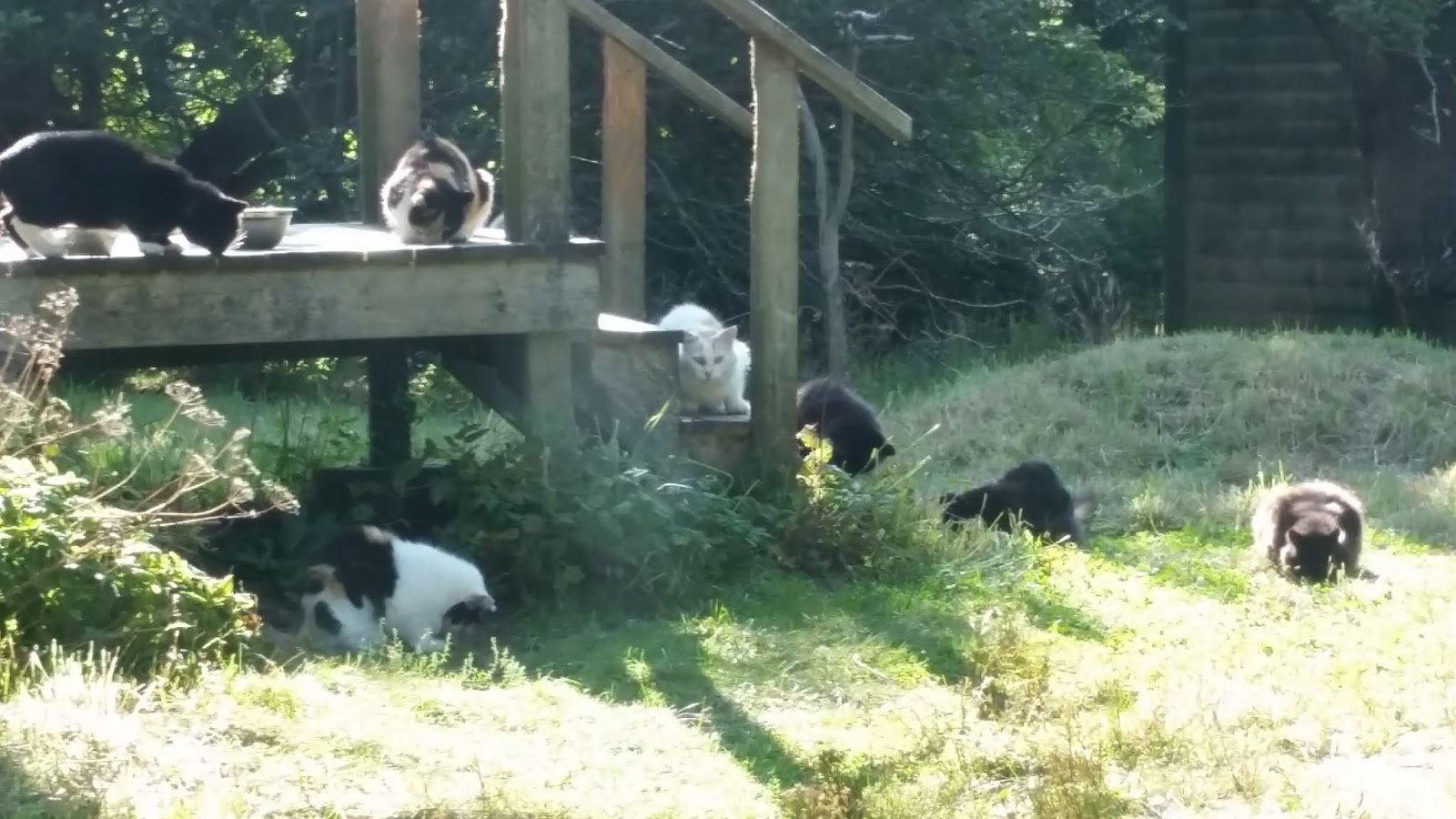 A hairless cat?Where do you find that?Chowing down on grass.You must have upset Cass.