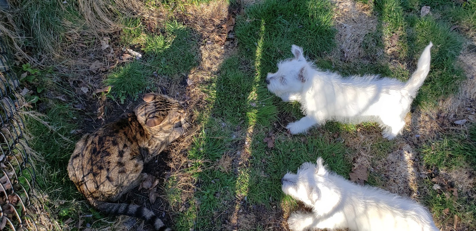 And as for Cassie and little old me.Now we have to take turns at our sea.Always watching that crazy Pat.If only I didn't need him to feed and scoop and things like that.