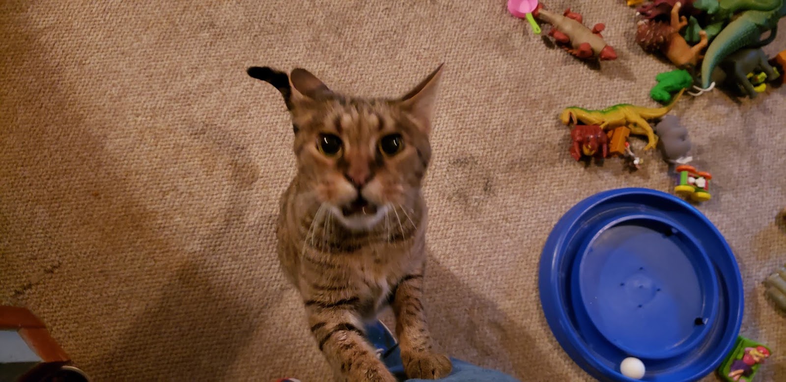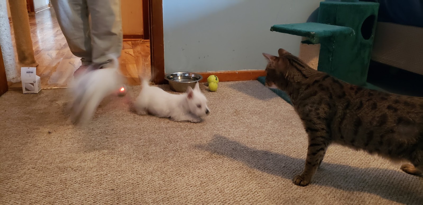 Or just sit and stare.See? No running there.This one is kinda, maybe, sorta my buddy now.Still it is beneath me because it can't meow.