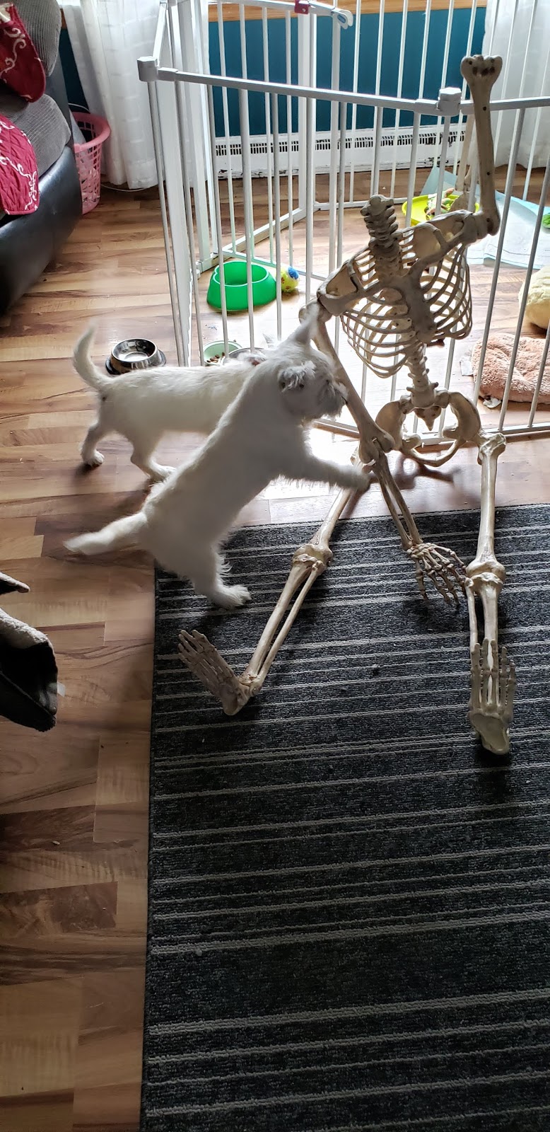 The mutts took the bones away.They are good for a few things at their bay.They chewed the thing to bits.I hope they don't get the shits.
