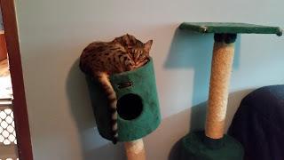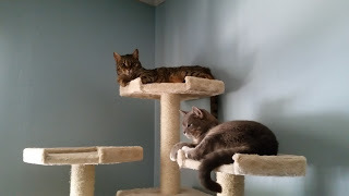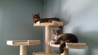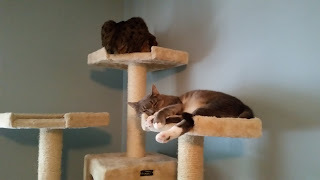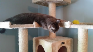 Now that is a loaded title there. Some may sure stop and stare. But no need to go to the gutter. Although the cat will sit here and mutter. Cassie is greedy as can be. She tried to hog the whole cat tree.