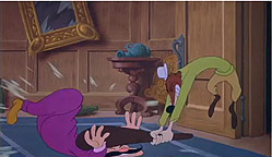 I slipped on the drool.That sure isn't cool.Whacked me head.Whoops, I'm dead.