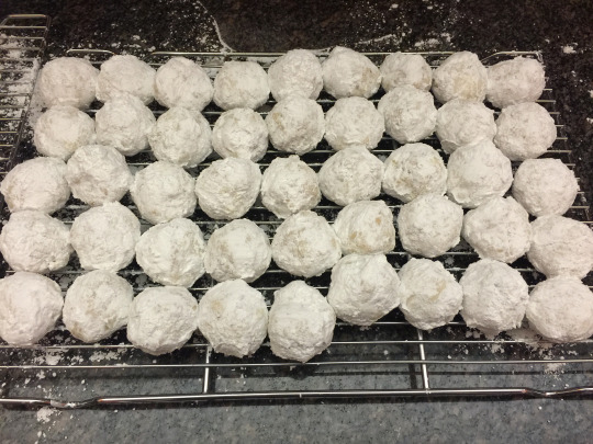 To accomplish this feat by December 24th (my self-imposed deadline), I have to make some dough in advance and freeze it, make some cookies in advance and freeze them and then spend the last three days baking round the clock. This past weekend I made the first ones, Russian Teacakes (pictured here) because they freeze the best. But even with a well-designed plan, between work deadlines and other obligations, I will literally be baking cookies this Saturday at like 5 a.m.
