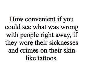 “My name is not Mara Dyer, but my lawyer told me I had to choose something. A pseudonym. A nom de plume, for all of us studying for the SATs. I know that having a fake name is strange, but trust me—it’s the most normal thing about my life right now. Even telling you this much probably isn’t smart. But without my big mouth, no one would know that a seventeen-year-old who likes Death Cab for Cutie was responsible for the murders. No one would know that somewhere out there is a B student with a body count. And it’s important that you know, so you’re not next.”