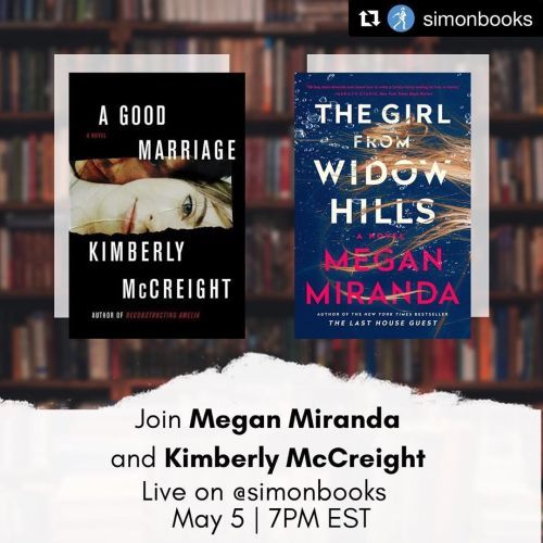 Tonight! To celebrate this evening’s (May 5 7PM EST!) live conversation between star authors @meganlmiranda and @kimberlymccreight we’ve partnered with @harpercollins to give one lucky reader a copy of #KimberlyMcCreight’s #AGoodMarriage and #MeganMiranda’s upcoming novel #TheGirlFromWidowHills