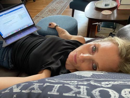 Portrait of a novelist facing the reality of her WIP after several weeks of working on something else. Just once could it be BETTER than I remember? Bless you for the fainting couch @brooklynwriters….
