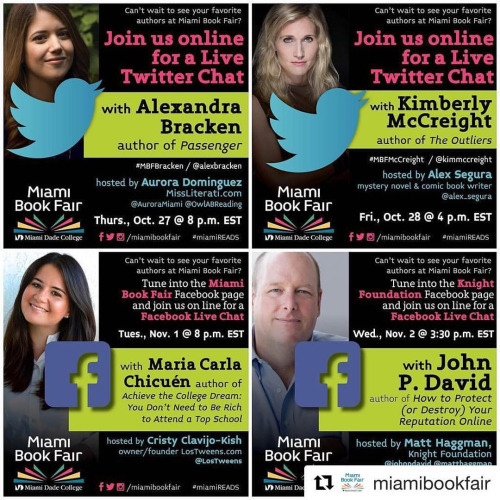 So excited to be joining in a twitter chat with host @alexsegurajr in honor of the upcoming @miamibookfair! This Friday 10.28 at 4 pm