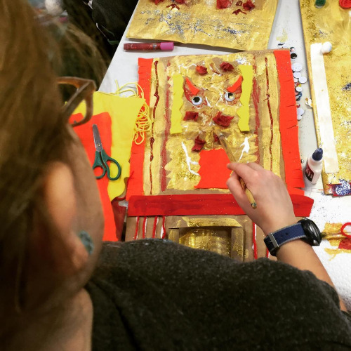 My morning: Family Friday Chinese New Year Lion Mask. I didn’t even micromanage (that much). (at Park Slope, Brooklyn, N.Y.)