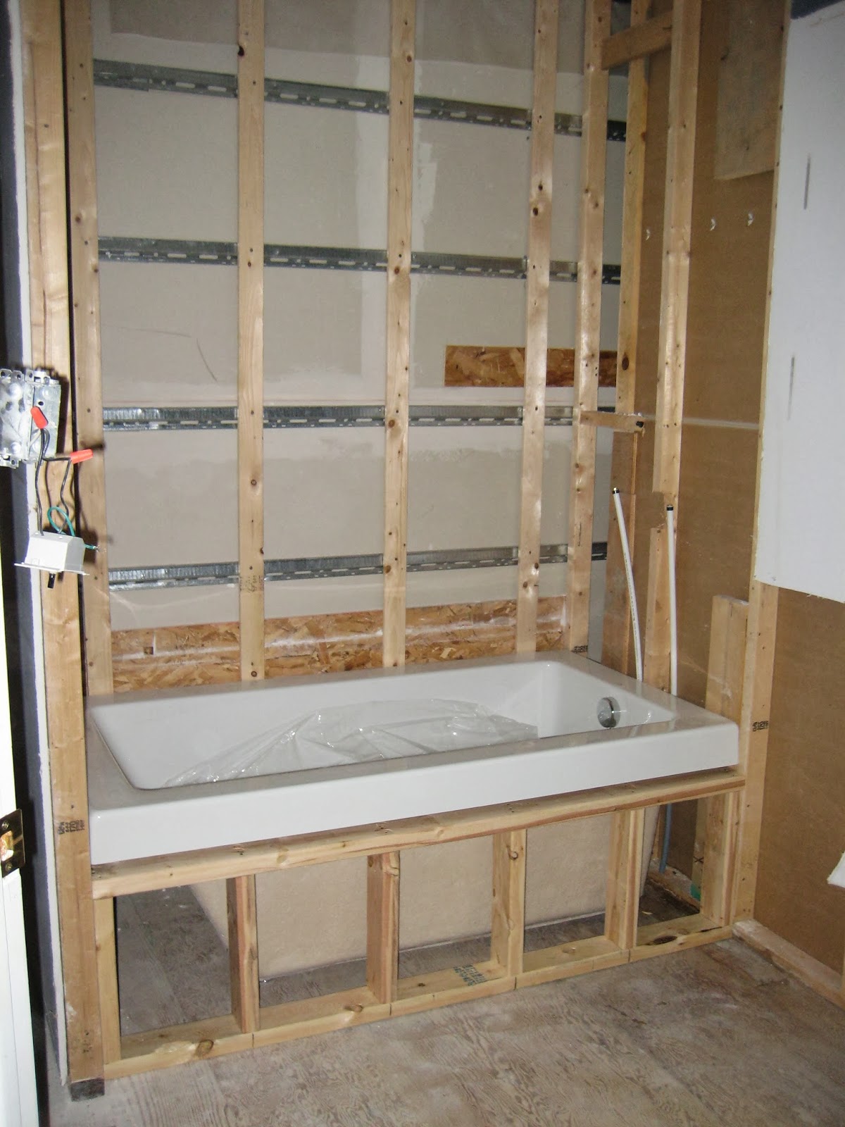 Day two's work mostly involved building and installing the frame for the bathrub. Ta da:
