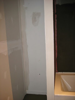 Day four saw the former closet space properly walled up and plastered on both sides, like this: