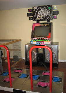 This is a Dance Dance Revolution game arcade made in Japan. They've been around for over a decade but I never thought I might be able to own the real thing (instead of the cheap home version plastic mats). I found a used one on ebay and my boyfriend was willing to fetch it. We "only" had to drive about 15 hours to get it from New York (the state) to Quebec (the city) with a rental truck.