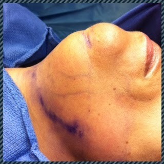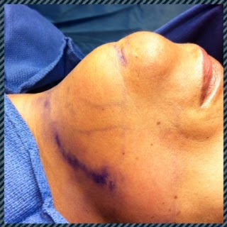 The problem was, this darn chin of mine. As Dr. A, talked about wanting to get rid of my chin, Dr. S. said, "You know, I think we should check to see if she is a candidate." My face lit up, huh, what? LIPOSUCTION!!! I started praying right then and there, LOL, but for real y'all.