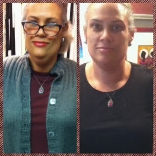 As you can see in the picture on top, I'm a new me! This was taken Sunday after I removed the bandage. The picture below, is a side by side. Someone at the knit shop took the picture of me in the grey sweater two weeks ago.