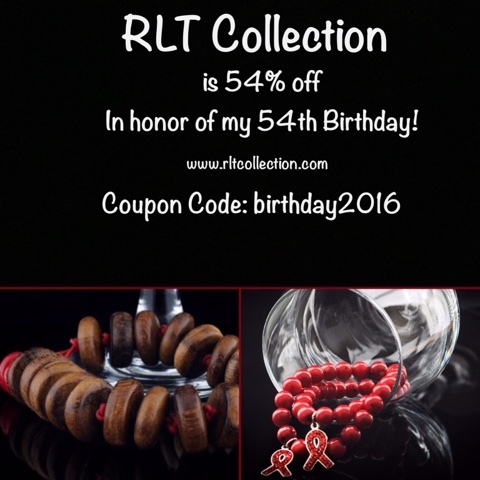In honor of my 54th birthday on Sunday RLT Collection is 54% off. This weekend only 5/20 thru 5/22! Coupon code at check out birthday2016. Thanks for all your support! SHOP! http:www.rltcollection.com