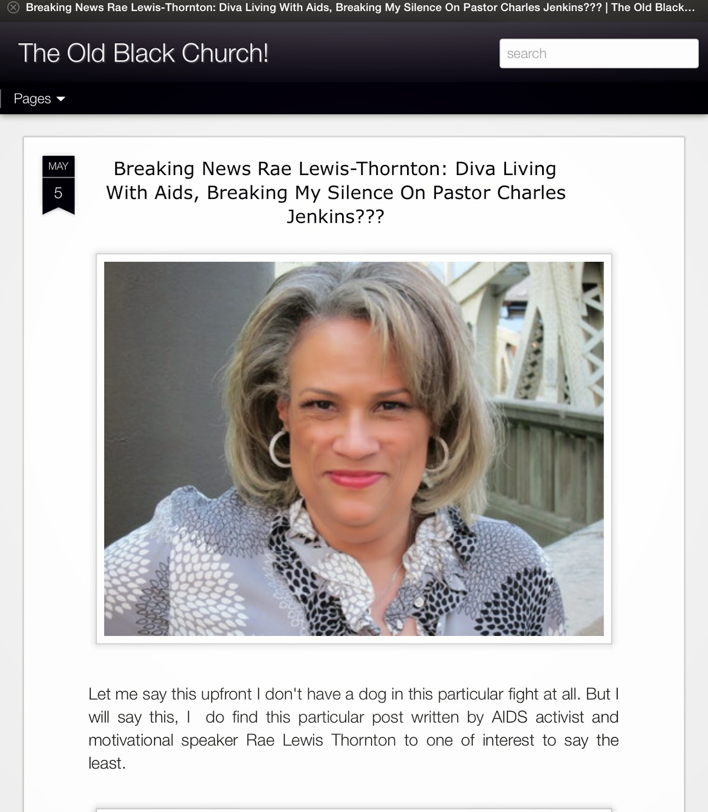 In the now four years that I have been blogging, I have been honest, transparent and candid. I have blogged about parts of my life that most people would never share publicly. I have also taken a stand on issues like sexual abuse and rape that have been controversial, like Bishop Eddie Long. In all these years, I've had a lot of debates and I have taken many hits. I've been called whore more times than I would like. But in all of this time I never stopped blogging about issues that pierce the soul and make people think. Blogging is a gift that God has given me to give to you.Tonight I made a very difficult decision to remove the blog post on Rev. Charles Jenkins and Mundi Griffin. Not because I don''t stand by my post. Anyone who knows me will tell you, I shoot straight from the hip on the issue of truth; And if something had changed in my opinion I would say it with no trepidation.
