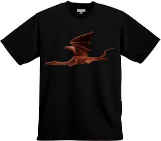 A bronze dragon soars majestically on this t-shirt from the Magic Owl Collection.