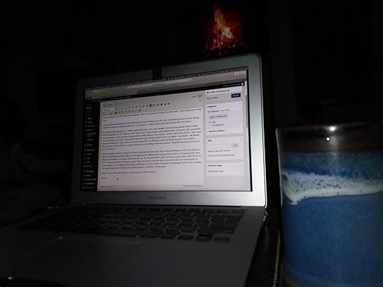 It’s Saturday morning as I write this. I’m on my second cup of coffee. The window blinds are up, revealing a nice view of the trees. I have the HD fireplace running on the TV—too warm for the real one. Nothing definite is on my schedule for today except writing on my WIP, Dennis the Conqueror. There’s a good chance I’ll finish the draft today. I have about 9,000 words to go.