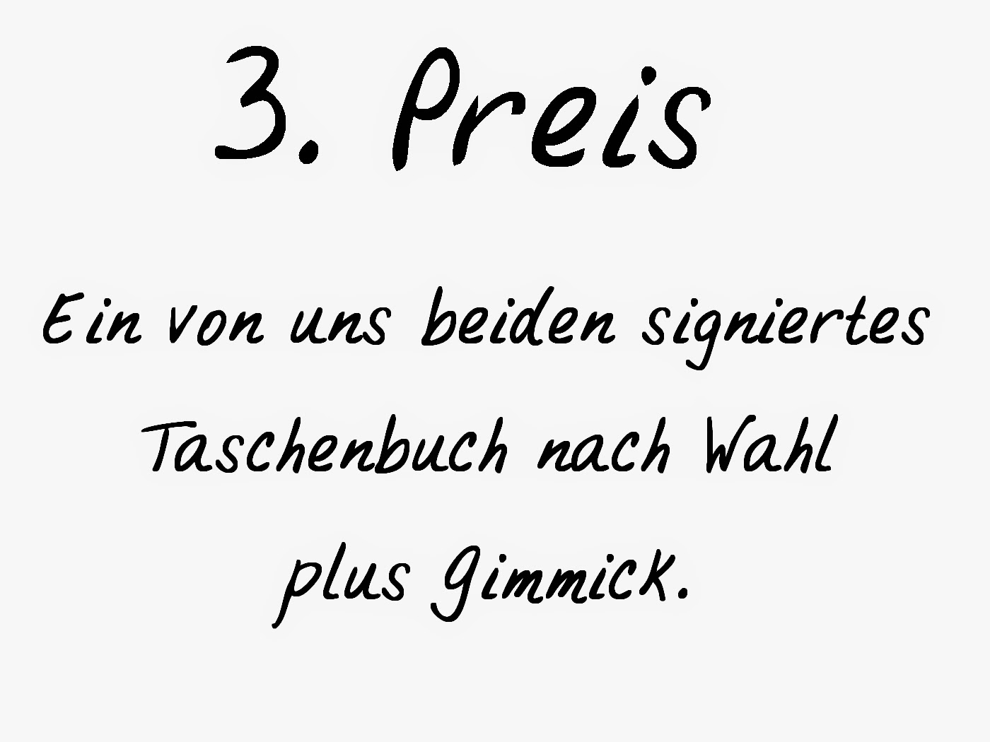 So, nun ... freut Euch, schickt uns an die bereits bekannte E-Mail-Adresse Eure Postadresse, soweit wir sie benötigen, und im Falle von Wunschbuch und E-Books bitte den Titel und das Format.